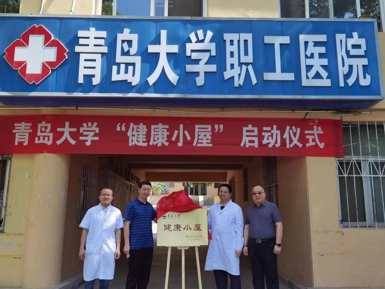 仪式上,校工会、校医院以及合作方青岛海众医疗健康有限公司的代表分别致辞,并共同揭牌。