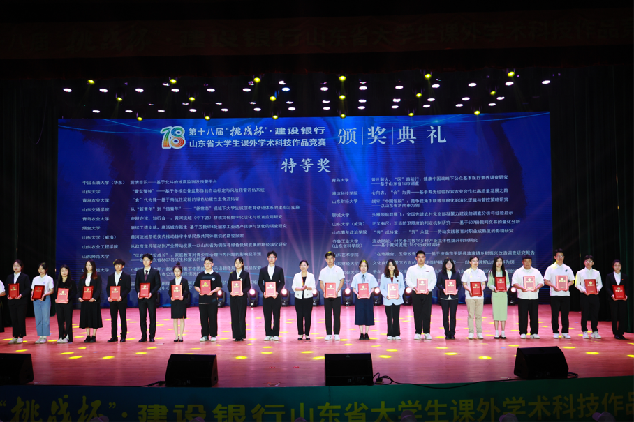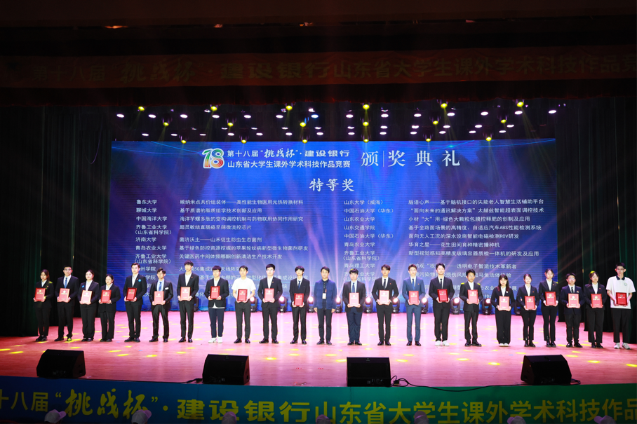 新闻网讯 近日,由共青团山东省委、山东省科学技术协会、山东省教育厅、山东省科学技术厅、山东社会科学院、山东省学生联合会主办,齐鲁工业大学(山东省科学院)、潍坊职业学院承办的第十八届“挑战杯”·建设银行山东省大学生课外学术科技作品竞赛决赛在齐鲁工业大学(山东省科学院)落下帷幕。