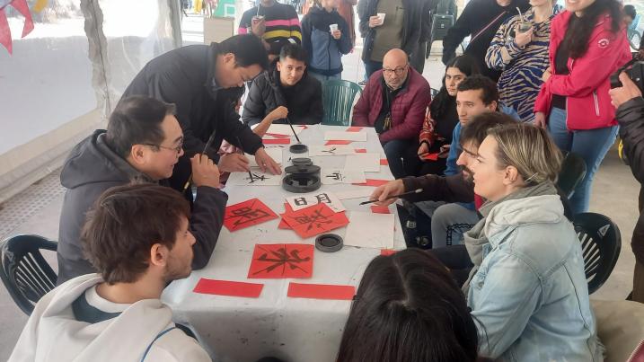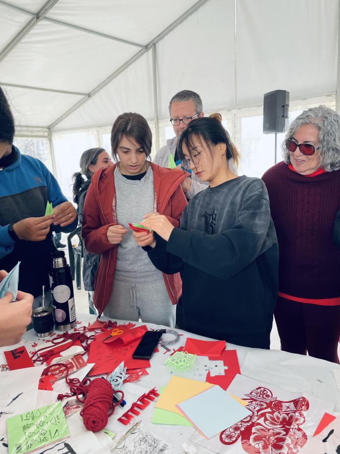 新闻网讯 5月27日,受乌拉圭移民博物馆的邀请,乌拉圭共和国大学孔子学院参加文化交流活动,分享了中国书法、剪纸、折纸、绳编等传统文化。