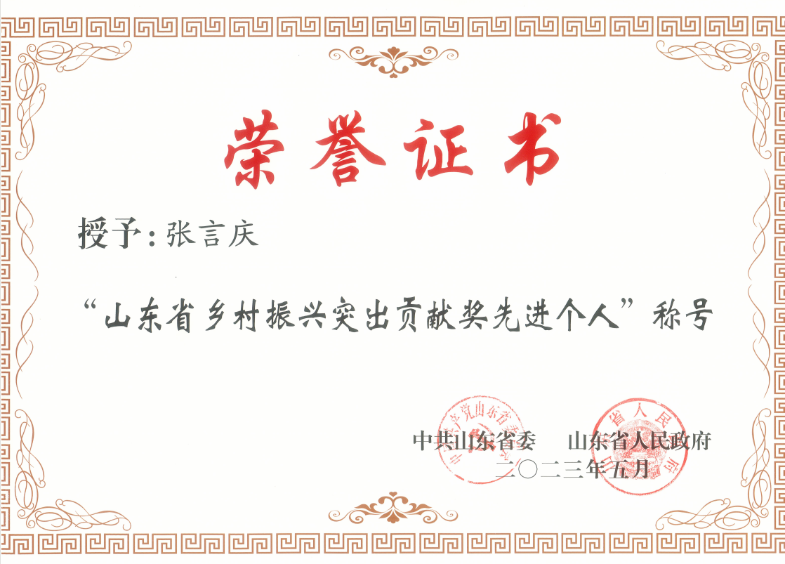 金年金张言庆同志被授予“山东省乡村振兴突出贡献奖先进个人”称号