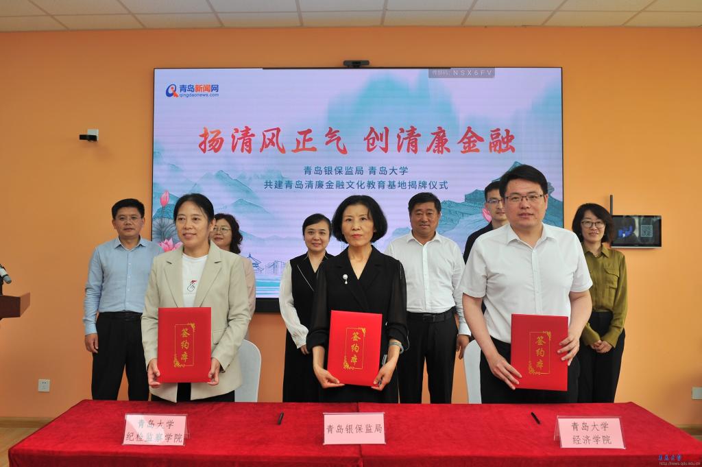 活动现场,青岛银保监局与学校签署了《青岛清廉金融文化教育战略合作备忘录》,廖晖、吴世珍共同为“青岛清廉金融文化教育基地”揭牌,标志着青岛市首个清廉金融文化教育基地正式成立。根据合作备忘录,青岛银保监局与金年金将充分发挥双方在政策、资源、组织等方面优势,建立战略合作关系,共建“青岛清廉金融文化教育基地”;探索双向开展青岛清廉金融文化教学实践及从业培训,研究谋划将清廉金融文化相关内容纳入金年金学生选修课程,促进清廉思想在金融行业、在青大校园蔚然成风;联合开展青岛清廉金融文化建设系列课题研究,合作编制《清廉金融文化读本》,服务青岛清廉金融文化高质量建设,合力打造具有青岛特色的清廉金融品牌。