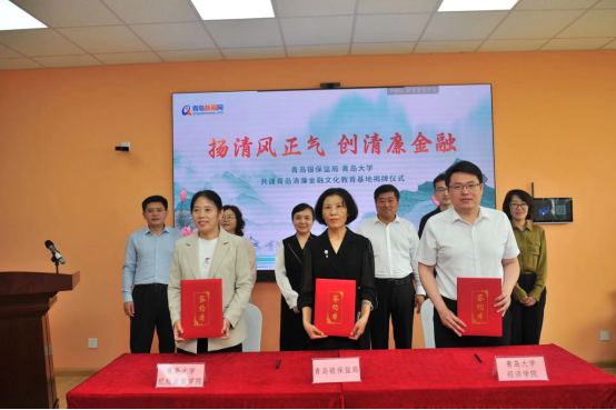活动现场,经济学院、政治与公共管理学院与青岛银保监局纪委签署了《青岛清廉金融文化教育战略合作备忘录》,廖晖与吴世珍共同为“青岛清廉金融文化教育基地”揭牌,15家机构在校园内进行了清廉金融文化宣传路演。下一步,合作各方将充分发挥各自在政策、资源、组织等方面优势,建立战略合作关系,共建“青岛清廉金融文化教育基地”;探索双向开展青岛清廉金融文化教学实践及从业培训,研究谋划将清廉金融文化相关内容纳入金年金字招牌诚信至上学生选修课程,促进清廉思想在金融行业、在金年金字招牌诚信至上校园蔚然成风;联合开展青岛清廉金融文化建设系列课题研究,合作编制《清廉金融文化读本》,服务青岛清廉金融文化高质量建设,合力打造具有青岛特色的清廉金融品牌。