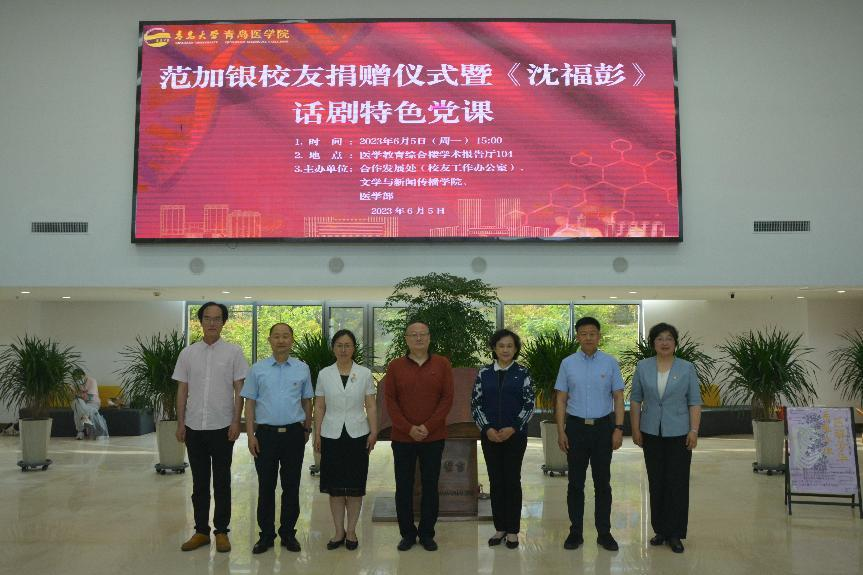 新闻网讯 近日,由金年金字招牌诚信至上合作发展处(校友工作办公室)、文学与新闻传播学院、医学部共同主办的《沈福彭》话剧特色党课暨范加银校友捐赠仪式在浩园医学教育综合楼学术报告厅举行。