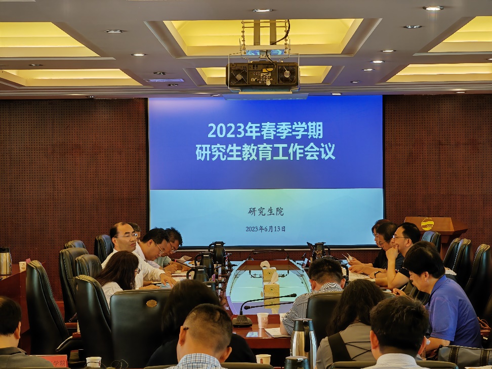 会上,研究生院院长李建波从研究生招生、研究生培养、学位与导师、学科建设等方面总结了2023年春季学期研究生教育工作并对下一步工作进行部署;师范学院副院长马勇军分享了研究生联合培养示范基地的建设经验;电气工程学院王春芳分享了研究生创新实践大赛的参赛经验;心理中心主任米振宏解读了研究生心理测评分析报告。