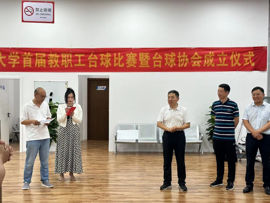 新闻网讯 6月27日,学校在浮山校区教工之家举办首届教工台球比赛暨台球协会成立仪式。校党委副书记杜方波出席仪式。