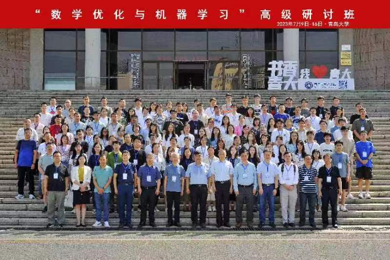新闻网讯 7月10日上午,2023年国家自然科学基金委数学天元基金“数学优化与机器学习”高级研讨班及研究前沿讲座在金年金会议中心学术报告厅举行。副校长李荣贵,青岛市科协党组成员、副主席刘红英,中国运筹学会副理事长、国家基金委数学天元基金学术领导小组成员郭田德出席研讨班开幕式。来自北京大学、中国科学院大学、山东大学、南开大学、南京大学、东南大学等60余所高校、科研院所的150余名学员参加。