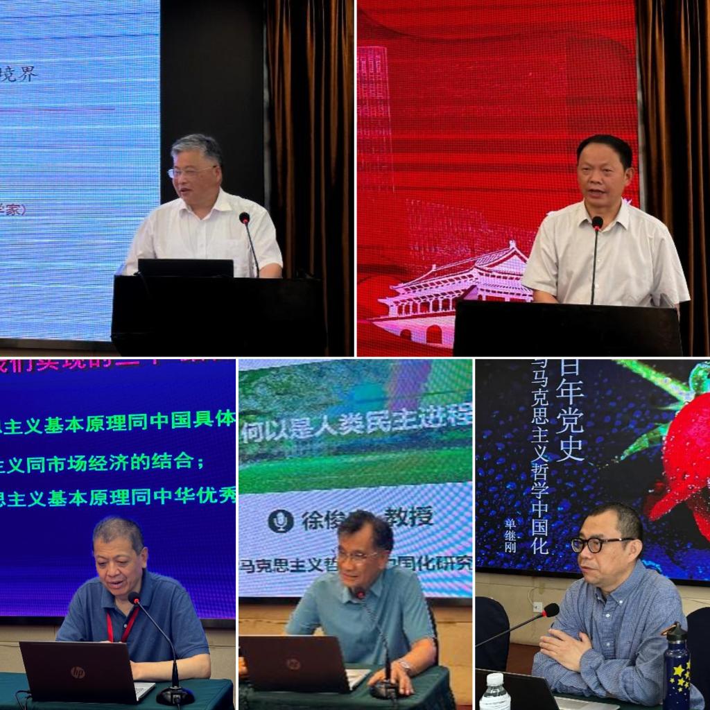 苏州大学政治与公共管理学院任平、武汉大学哲学学院汪信砚、山东大学哲学与社会发展学院何中华、中山大学马克思主义学院徐俊忠、单继刚分作题为《开辟马克思主义哲学中国化时代化新境界的方法论自觉》、《马克思主义哲学中国化的几个基本理论问题》、《马克思与孔夫子:一个跨时空的相遇》、《“人民民主”:何以是人类民主进程中的一种新形态》、《百年党史与马克思主义哲学中国化》的报告。