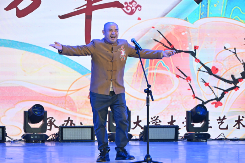 比赛中,戏曲《牡丹亭·游园》戏腔婉转;相声《罗密欧与朱丽叶》别具一格;小品《断片》奕奕传神,选手们精心编排、倾心演绎,以满腔的热情描摹青大青年昂扬的姿态。这些作品中有幽默诙谐的段子,也有感人至深的情节,选手们精湛的技艺和独特的表演风格赢得了现场观众的阵阵掌声。决赛现场由大学生艺术团表演的器乐合奏《象王行》和群舞《灼灼芳华》给观众带来更加丰富多彩的观赛体验,由青岛市歌舞剧院说唱团国家二级演员李强带来的嘉宾节目山东快书《打扑克》更是生动展现了经典曲艺作品的魅力。