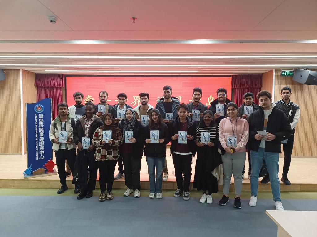 青岛市公安局出入境管理局副局长迟华东向来访的青大留学生们表示欢迎,并详细介绍了青岛移民服务中心的基本情况,市人社局和科技局相关部门负责人分别就外国人在青就业创业政策和外国人工作签证办理流程开展宣讲。第三届“青岛最美警察”、青岛市公安局出入境管理局签证科刘婷则围绕外国人护照、停留居留、签证办理向留学生进行了宣讲,并介绍了国家移民管理机构12367服务平台相关情况。