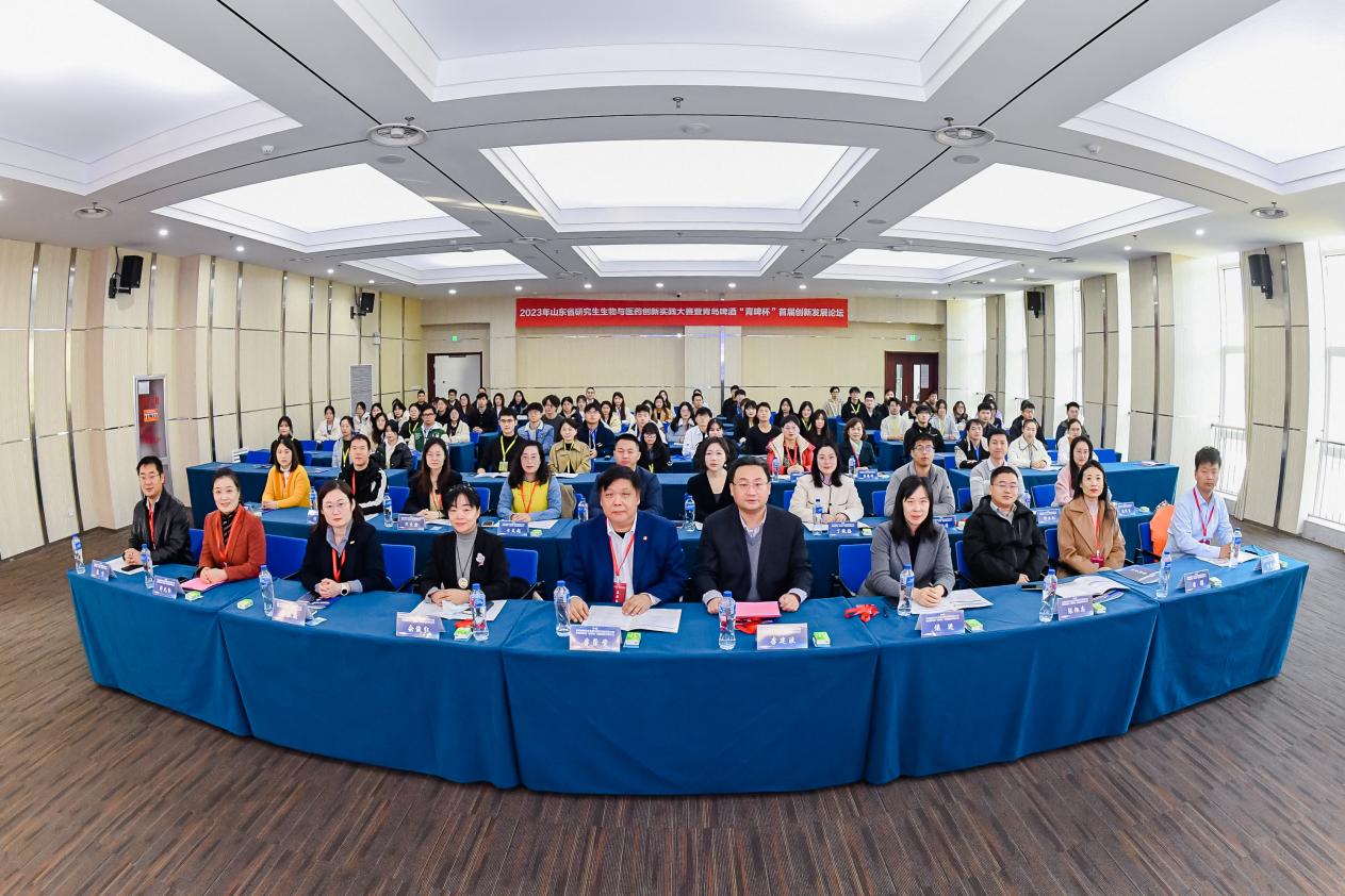 新闻网讯 11月19日,2023年山东省研究生生物与医药创新实践大赛暨青岛啤酒“青啤杯”首届创新发展论坛在学校会议中心成功举办。本次活动旨在挖掘和选拔生物与医药学科领域的优质项目,加快培育新业态、新模式,助推健康产业转型升级,为国家“双创”事业的发展贡献力量。青岛啤酒股份有限公司研发中心副主任余俊红、副校长李荣贵出席开幕式并致辞。来自中国海洋大学、山东农业大学、山东理工大学、鲁东大学、青岛农业大学等高校的38支参赛队伍近200名参赛选手参加本次活动。