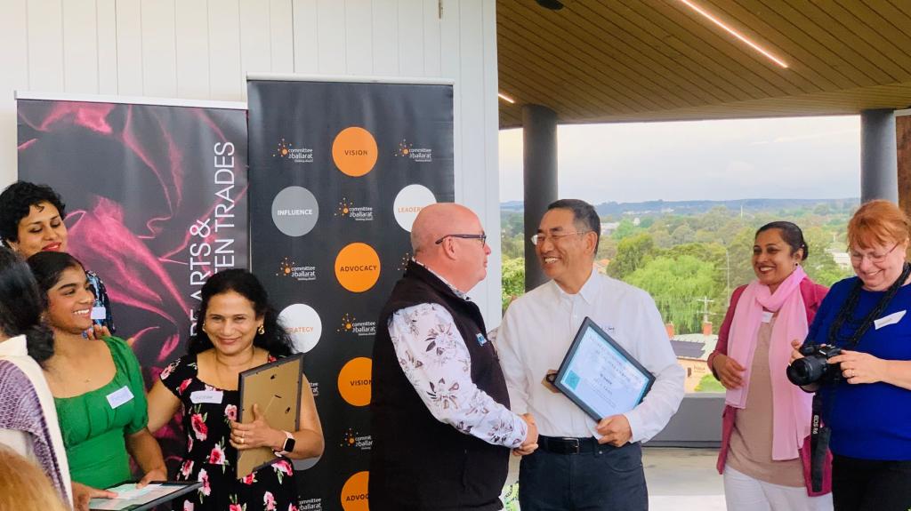 今年3月,杨际军曾获得巴拉瑞特市多元文化奖。当地媒体《信使报》(The Courier)就这次颁奖进行了报道。颁奖仪式在澳大利亚珍贵艺术与手工艺遗产中心(Australian Centre for Rare Arts & Forgotten Trades)举行。