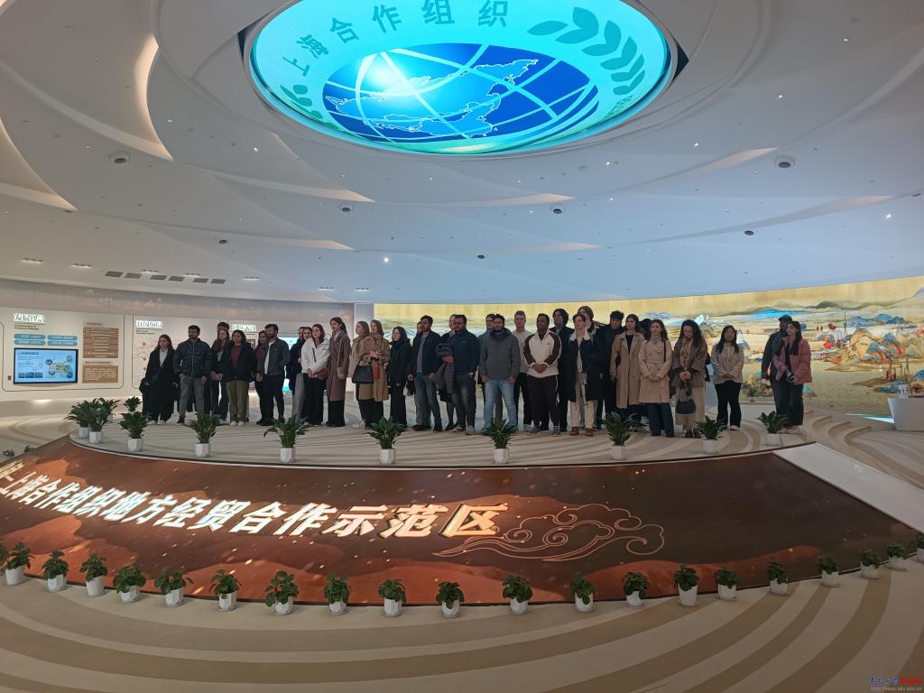 在青岛·上合之珠国际博览中心,留学生们在讲解员的带领下参观了上合之珠成果展,全面了解上海合作组织发展历程以及上合示范区在促进上合组织国家间经贸往来的合作成果,并依次打卡上合国家元素馆,充分感受上合国家丰富多元的文化特色。