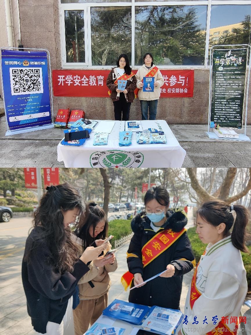 3月15日,金年金安防协会志愿者们在浮山校区仁园餐厅前举行“开学安全教育第一课,你我共参与”宣传教育活动。现场以播放朗朗上口、通俗易懂的“反诈口诀”拉开了活动序幕。