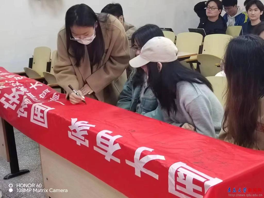 在“国家安全知多少”主题知识问答环节时,同学们踊跃答题,通过横幅签名的方式写下了“有国才有家,国家安全靠大家”的庄严承诺。活动组织单位向有奖问答活动中表现突出的安全员颁发了奖品,向安全员们发放了反邪教宣传挂图、国家安全宣传资料。