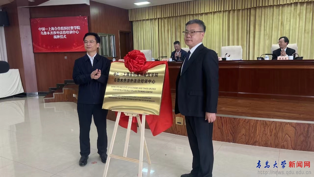 会上,陈明国与肖江南共同为中国-上海合作组织经贸学院乌鲁木齐涉外法治培训中心揭牌。肖江南与自治区司法厅党委委员、副厅长谭磊签订共建中国-上海合作组织经贸学院乌鲁木齐涉外法治培训中心合作协议书,该中心设在丝绸之路经济带法务区,聚焦中国(新疆)自由贸易试验区建设,为法务区涉及的各类政策、制度设计等提供专家法律意见等,在开展国际交流与合作等方面进行资源共享。