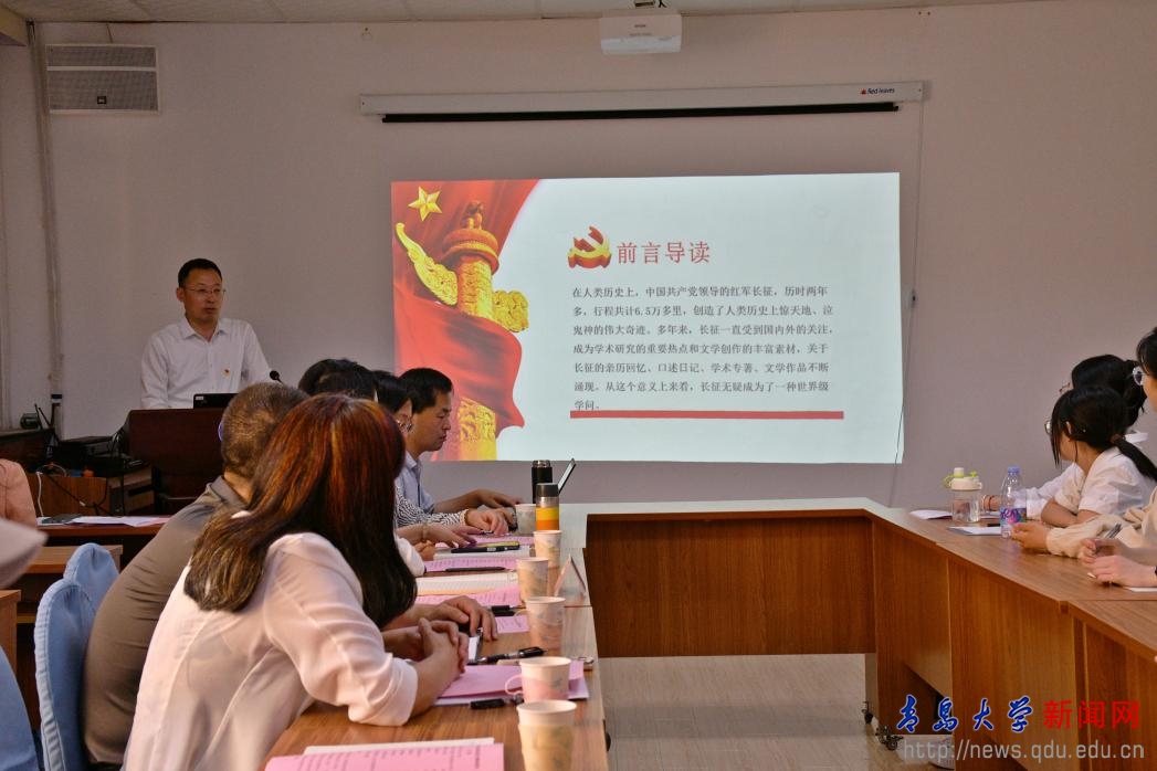 新闻网讯 为贯彻红色长征精神走深走实,引导毕业生汲取奋进前行力量,6月13日上午,外语学院在博文楼312会议室召开“青春心向党,毕业再出发”2024届毕业生党员党课。校党委常委、副校长刘恩贤以红色长征精神为主题,为2024届毕业生党员讲述了专题党课。外语学院党政领导班子成员和各党支部书记到场聆听了党课。