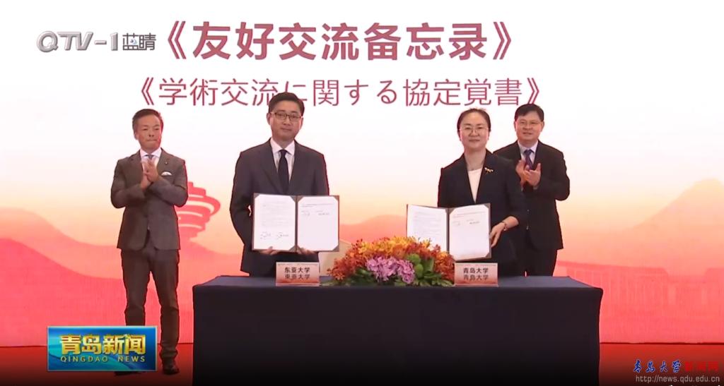 新闻网讯 7月21日晚,青岛-下关缔结友好城市45周年纪念活动在香格里拉大酒店举行。校党委常委、副校长何燕参加庆典,并代表学校与日本东亚大学签署合作备忘录。青岛市市长赵豪志和下关市市长前田晋太郎见签。
