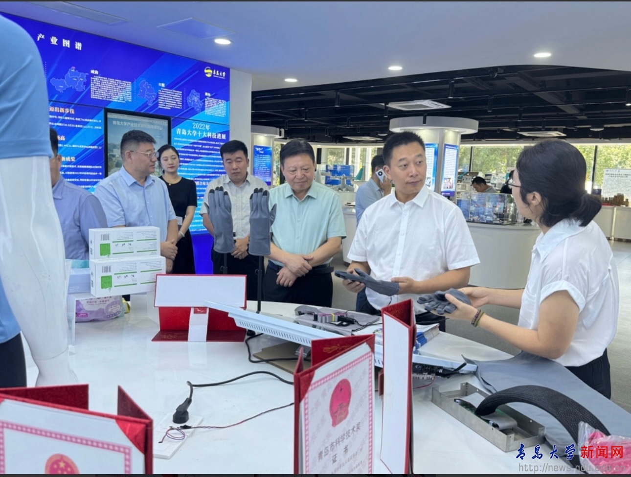 青岛理工大学、中国水产科学研究院黄海水产研究所、山东省科学院海洋仪器仪表研究所、歌尔科技有限公司、中车青岛四方车辆研究所有限公司、科研成果转化中心、产业技术研究院、知识产权研究院、分析测试中心等单位和部门代表参加调研