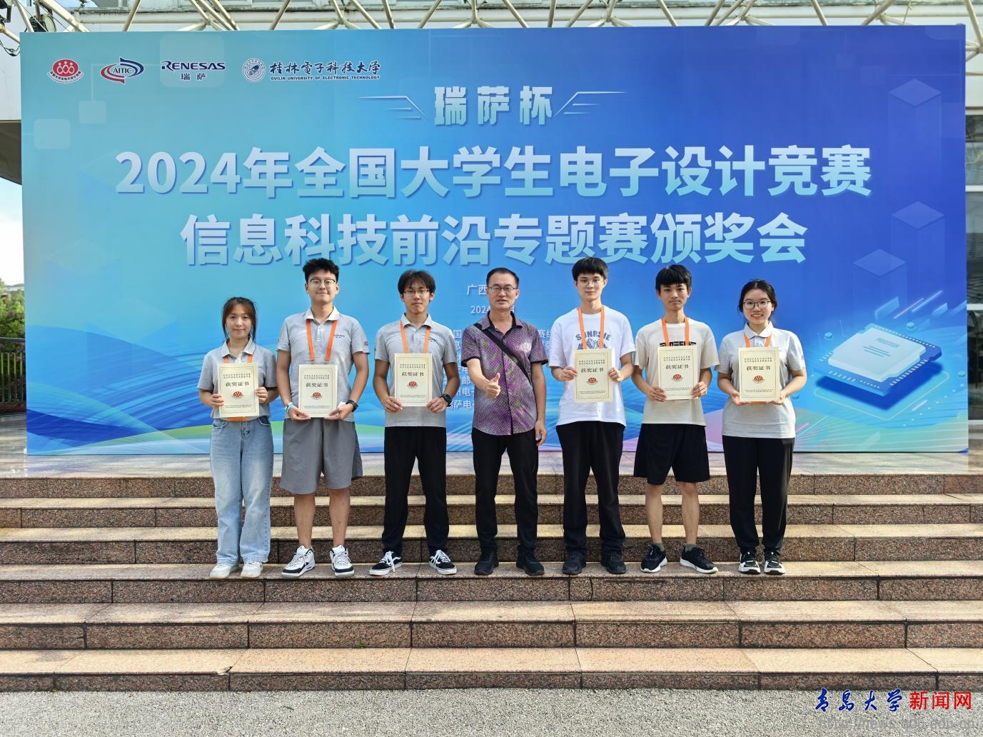 新闻网讯 2024年全国大学生电子设计竞赛“瑞萨杯”信息科技前沿专题赛,于8月25日在桂林电子科技大学花江校区圆满落幕。电子信息学院于瑞涛老师指导两支队伍参赛,获得优异成绩。此次竞赛金年金蝉联全国一等奖,是全国唯一连续两届获得全国一等奖的高校。张益铭、张兆坤、胡菲团队斩获全国一等奖,李逸昂、赵龙、李珺蕊团队获全国三等奖。