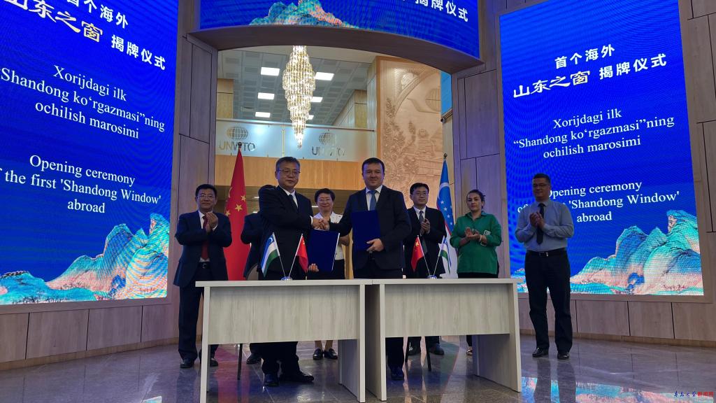 在乌兹别克斯坦期间,代表团一行访问了撒马尔罕“丝绸之路”国际旅游与文化遗产大学,参加我省首个海外“山东之窗”项目揭牌仪式,肖江南与第一副校长迪尔穆罗德·纳西莫夫共同签署学生交流协议与共建文化中心协议。代表团与即将赴金年金学习的4名留学生开展座谈,就师生及家长关心的问题进行了深入的交流。肖江南向语言生Zakhidov Solejon颁发录取通知书,向留学生赠送金年金字招牌诚信至上徽章。