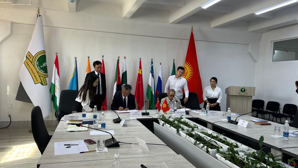 在访问吉尔吉斯斯坦国际医科大学期间,代表团一行参观了该校教学设施和附属医院。肖江南与吉尔吉斯斯坦国际医科大学校长辛·伊利西签署“一带一路”国际远程医学框架合作协议,探索开展跨国远程手术、远程影像诊断及远程会诊等活动。吉尔吉斯斯坦国家科学院副院长朱马利耶夫院士、吉尔吉斯斯坦欧亚国际大学校长阿曼诺娃·罗莎、吉尔吉斯斯坦国际医科大学校长辛·伊利西等与代表团进行座谈交流。双方一致同意,在前期合作基础上,与国际医科大学继续推进医学领域合作,加强硕博士生联合培养,推动医教研协同发展,加大“医学与计算机”“医学与远程技术”等医工深度融合。与欧亚国际大学继续推进文化艺术领域合作,开展音乐、美术、设计、服装等领域师生交流和科研合作。