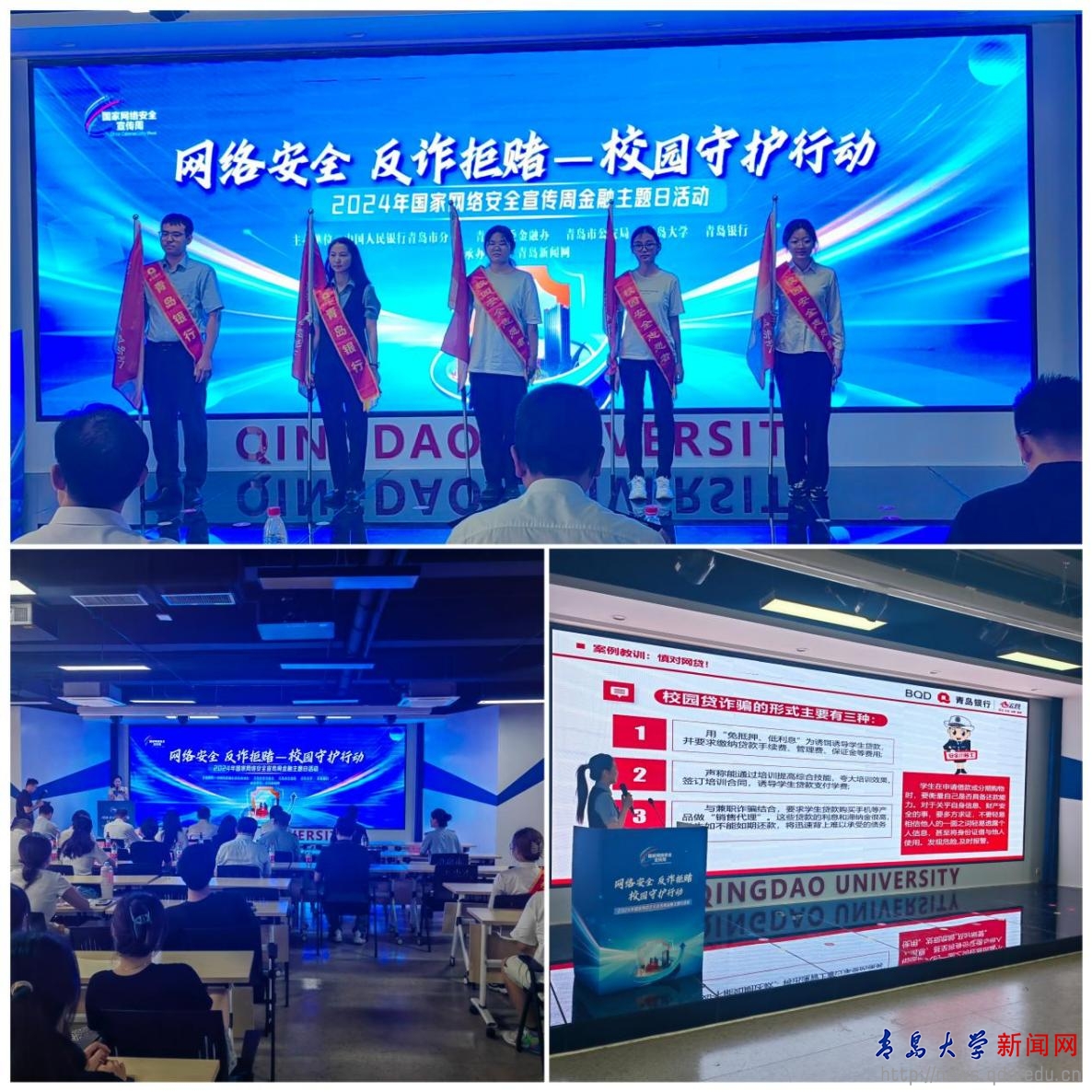 9月13日,金年金联合中国人民银行青岛市分行、青岛市委金融办、青岛市公安局、青岛银行等单位,组织开展了“2024年国家网络安全宣传周之‘网络安全 反诈同行-校园守护行动’”。活动重点围绕金融主题,通过启动仪式、集中宣讲、互动宣传三种形式加大校园网络安全、防范网络电信诈骗知识宣传力度,提高师生对校园贷、套路贷、电信诈骗等常见金融诈骗手段的知晓率和普及度,保护自己的信息安全和账户安全。
