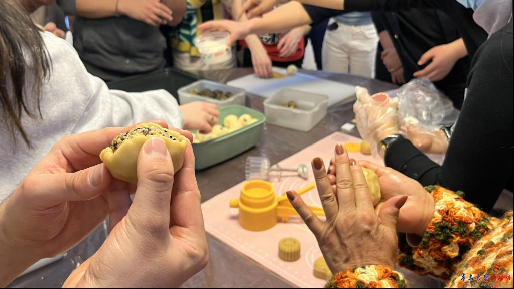 学生们现场亲手制作中秋节的经典美食——月饼。从揉面到包馅,每个环节都让大家感受到动手制作的乐趣,并进一步加深了对中国节日习俗的理解。