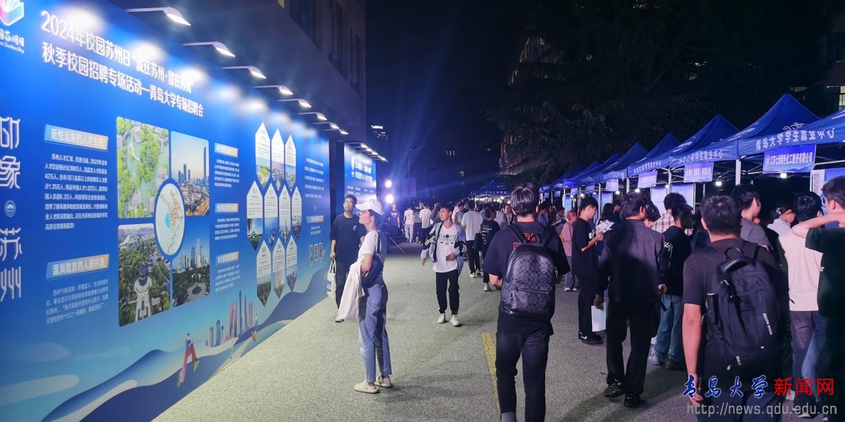 新闻网讯 9月25日晚,“印象·苏州”苏州市及辖区张家港市专项主题招聘会在金年金浮山校区博文楼前广场顺利举办。活动吸引千余名毕业生到场了解苏州港城引才政策。