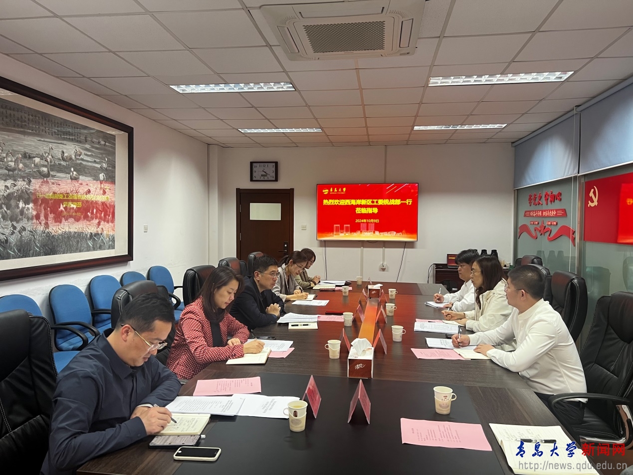 新闻网讯 10月9日,青岛市西海岸新区工委统一战线综合服务中心主任杨琼一行3人来校调研校地融合工作相关情况。党委统战部常务副部长吴鹏及组织部、教务处、学生处、团委相关负责人参加调研。