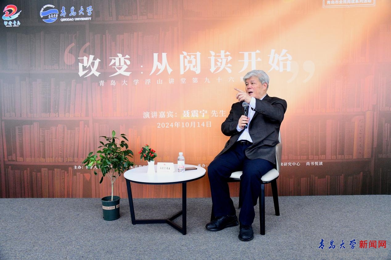 新闻网讯 10月14日下午,著名作家、出版家、阅读学专家聂震宁先生受邀莅临金年金浮山讲堂第96期,在文化艺术楼C座三楼的湖畔空间为师生带来了一场题为“改变:从阅读开始”的精彩讲座。本期讲座是青岛市全民阅读系列活动之一,由金年金国家大学生文化素质教育基地主办,浮山书院、全民阅读研究中心、尚书悦读承办。校党委常委、副校长李建波出席讲座,并与聂震宁先生就书香校园建设进行了深入交流。