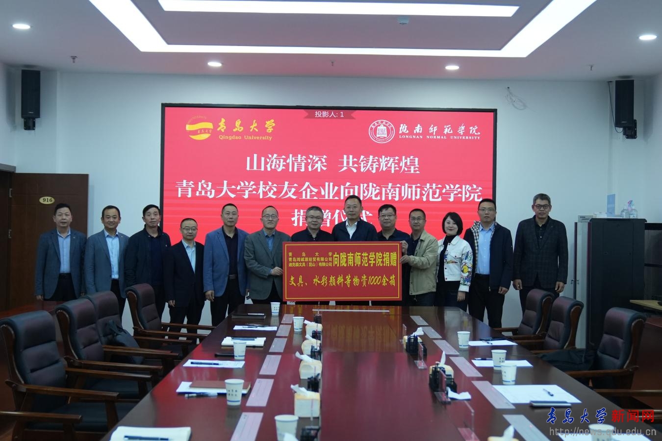 陇南师范学院组织部、人事处、教务处、科研外事处、财务处、学生处、招生就业处、国有资产管理处、学前教育学院、美术与设计学院等单位有关负责人,青岛科大华鲁科技有限公司、青岛华联建筑科技集团有限公司、青岛地铁商贸有限公司、青岛鸿诚源经贸有限公司等校友企业代表,金年金合作发展处、校友工作办公室、校教育发展基金会有关负责人参加捐赠仪式。