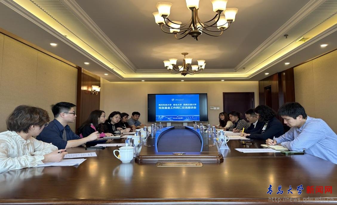 在西南交通大学,校友工作办公室(教育基金管理办公室)副主任阮波、彭燕、刘堃参加了座谈交流。彭燕对基金会内部治理、特色项目、保值增值等工作进行了介绍,刘堃就校院两级校友工作开展情况,校友服务、校友会建设等工作进行了介绍。双方就校友会、基金会的运作模式、资金募集、项目管理、奖励办法、保值增值等工作中的重点、难点和堵点进行了深入的交流和探讨。