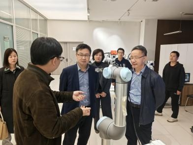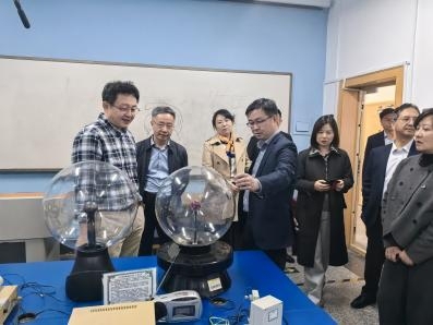 市北区教体局一行先后参观了医学部人体生命科学馆、金年金字招牌诚信至上分析测试中心、校史馆、物理科学学院科技创新与科学普及实践中心、纺织服装学院纺织展览馆、未来研究院。在分析测试中心听取了高端实验设备设施的介绍,并观看了电镜等高精尖实验技术展示;在物理科普中心听取了实验设备、科学教育实践活动等方面的介绍;在纺织展览馆听取了新型纤维材料等前沿科技成果和国家非遗项目的讲解;在未来研究院听取了智能穿戴、智能机器人、智能制造研究等方面的讲解,并观看了“未来战队”的机甲大师展示。