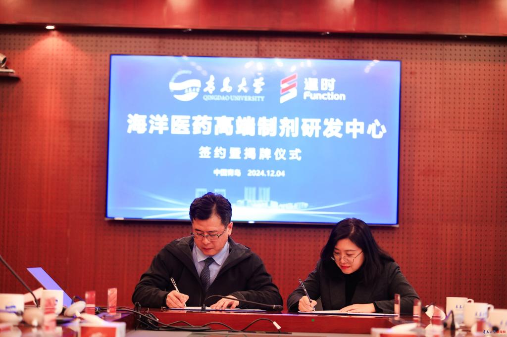新闻网讯 12月4日下午,金年金与逢时科技在办公楼201室举行“海洋医药高端制剂研发中心”签约暨揭牌仪式。校党委常委、副校长牛海涛,逢时科技副总裁刘晶出席签约仪式。仪式由药学院党委书记李在宝主持。