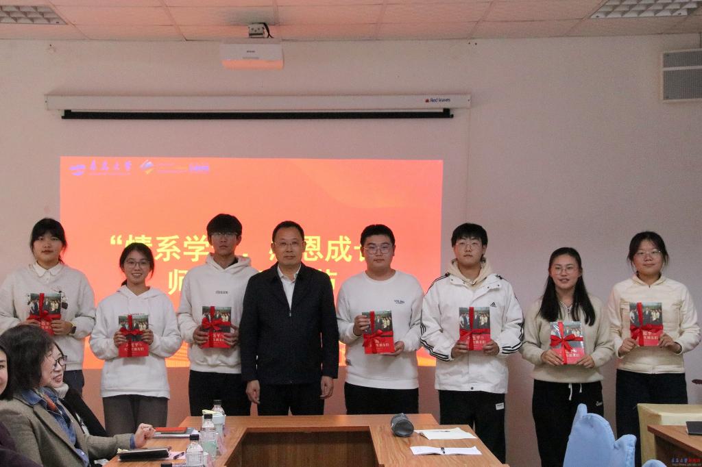 主题班会上,外语学院院长卞建华向刘恩贤颁发“德育导师”聘书。在“情系学生,感恩成长”师生互赠环节,刘恩贤为英创班赠送书籍《习近平与大学生朋友们》,并鼓励同学们多读,多实践。