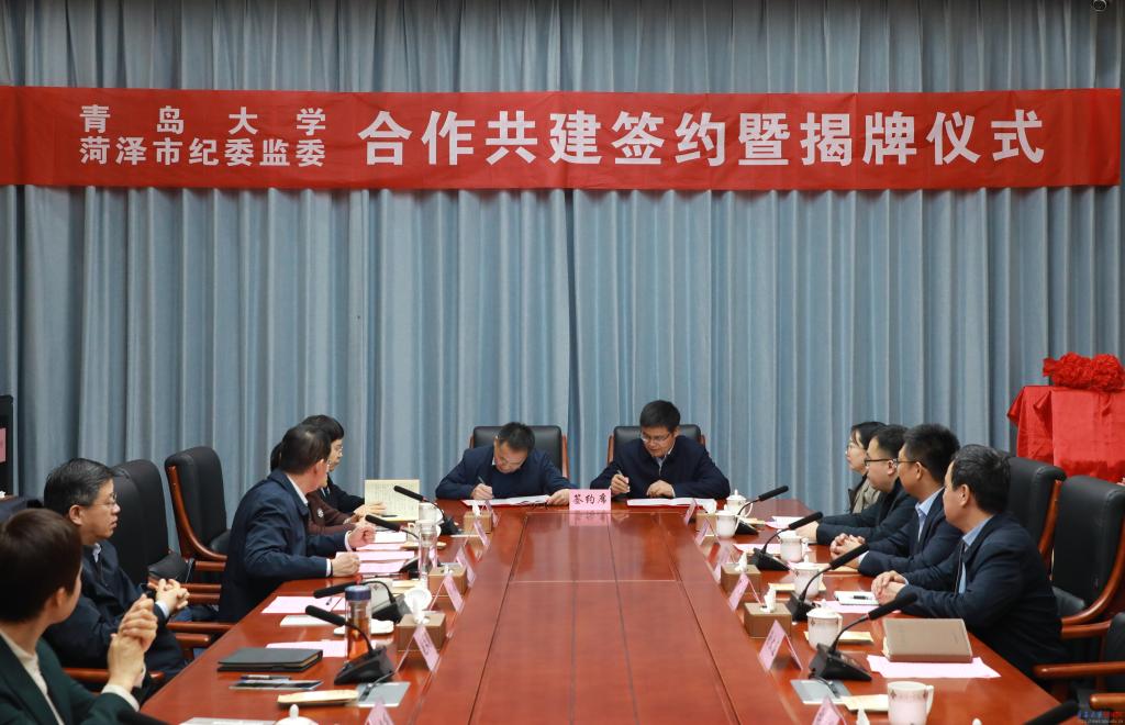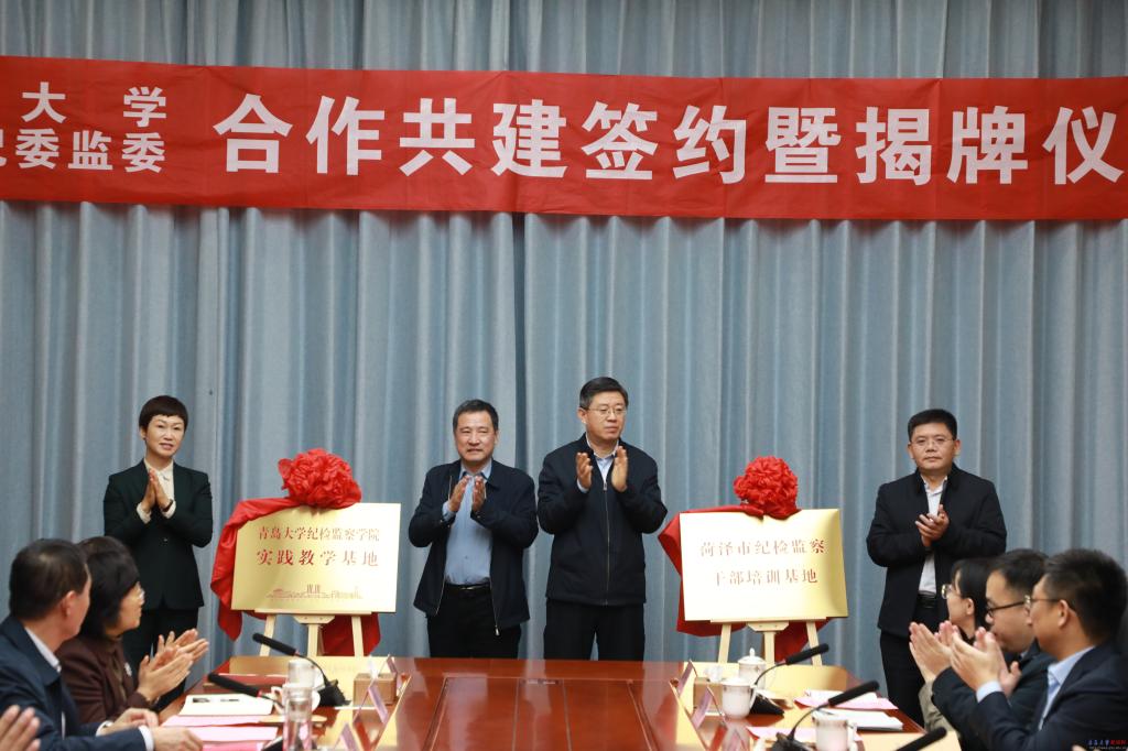 会上,赵永强、徐大连分别代表菏泽市纪委监委、金年金字招牌诚信至上签署了合作共建协议。菏泽市纪委、监委负责同志与校纪委、纪检监察学院负责同志共同为“菏泽市纪检监察干部培训基地”和“金年金字招牌诚信至上纪检监察学院实践教学基地”揭牌。纪检监察学院负责同志介绍了学院建设发展情况。