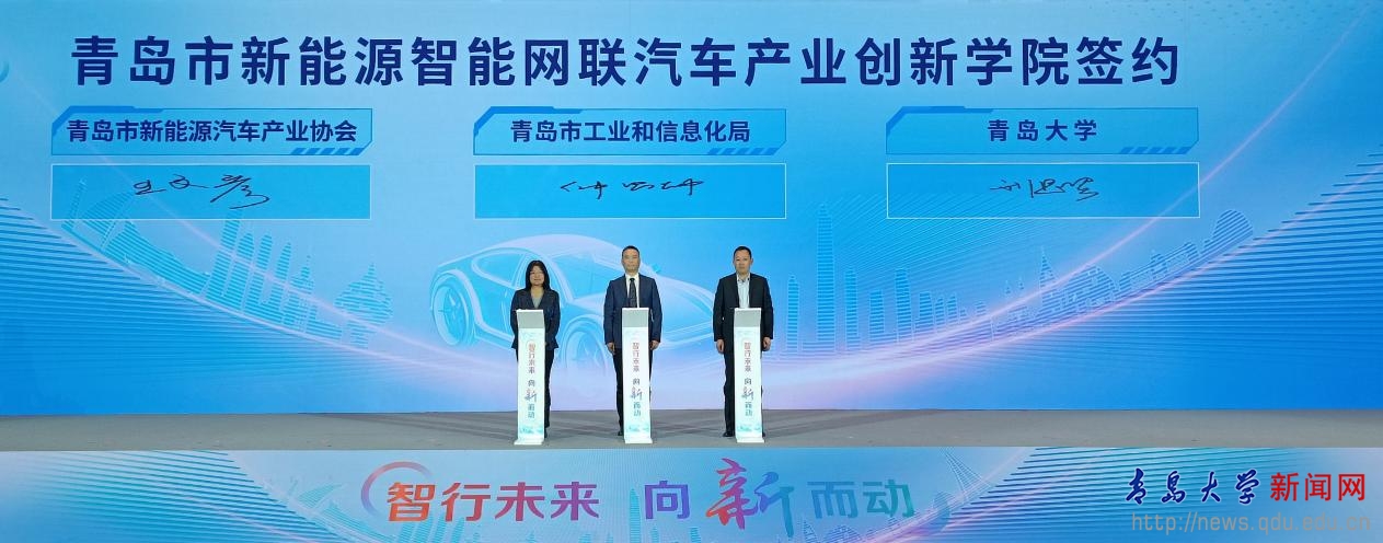 新闻网讯 12月17日下午,青岛市智能网联新能源汽车产业生态大会在青岛国际会议中心举行。青岛市政府副秘书长王东翔出席活动并致辞。校党委常委、副校长刘恩贤出席活动并代表学校参加青岛市新能源智能网联汽车产业创新学院签约仪式。