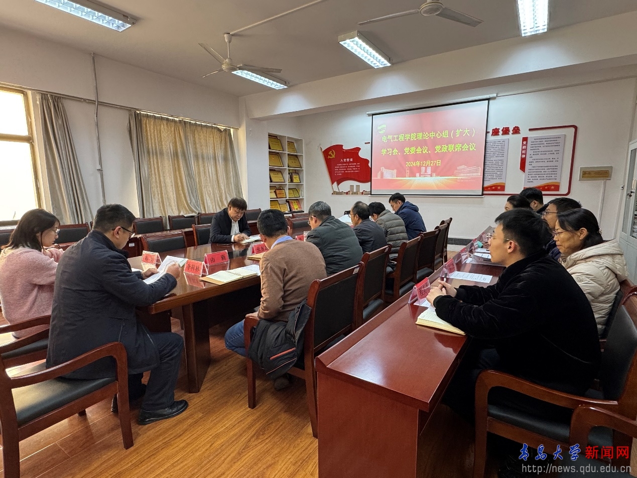 新闻网讯 12月27日下午,副校长李荣贵参加电气工程学院党委理论学习中心组(扩大)学习会,列席旁听学院党委会议及党政联席会议。
