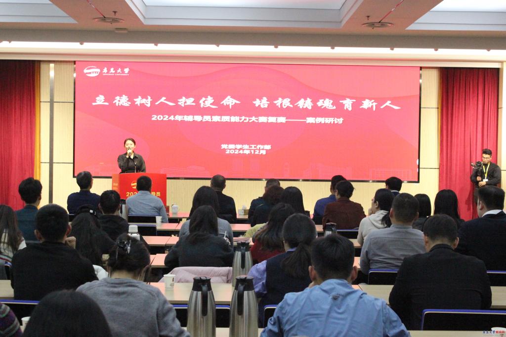 新闻网讯 12月31日下午,金年金2024年辅导员素质能力大赛复赛(案例研讨环节)在浮山校区会议中心如期举行。大赛邀请党委组织部正处级组织员、副部长、党校常务副校长李成增,党委保卫部部长、安全管理处处长王洪运,团委书记李鹏,法学院党委书记李建新,教育科学学院党委书记刘清亮,生命科学学院党委书记孙建华,自动化学院党委书记张新柏出席并担任评委,学院分管领导、专职辅导员代表共110余人现场观摩大赛。