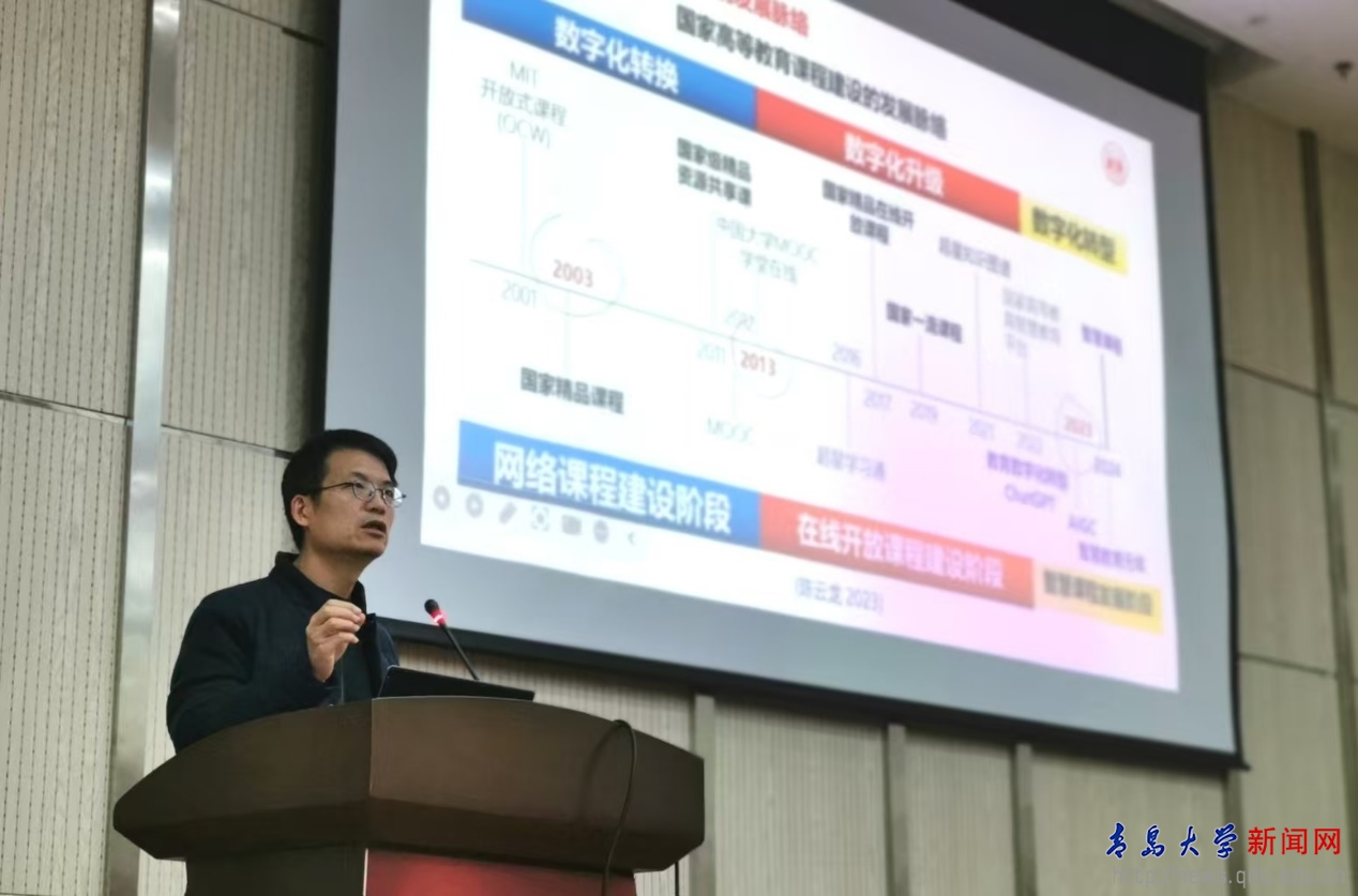 培训会邀请了湖南大学化学化工学院刘强教授进行主题报告。刘强教授深入浅出介绍了知识图谱技术和AIGC人工智能技术在智慧课程建设中的应用,并通过自身实践案例分享和现场互动,展示了人工智能如何创新课堂教学。他强调,知识图谱作为人工智能的基石,可以有效组织和关联教学资源,帮助学生构建知识体系,并实现个性化学习,为老师们建设智慧课程提供了宝贵的经验和启示。