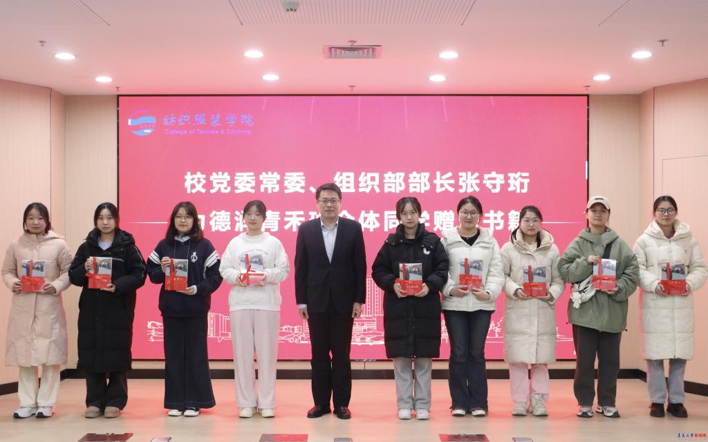 张守珩为同学们赠送了《习近平与大学生朋友们(第二卷)》,鼓励同学们在求学的道路上不断磨砺自己、提升自己,为祖国发展贡献自己的智慧和力量。