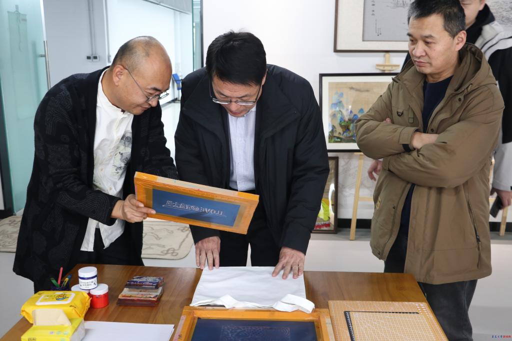 张守珩同师生们一起参观金年金字招牌诚信至上纺织馆,学生代表向张守珩赠送全班同学共同制作的中国结。