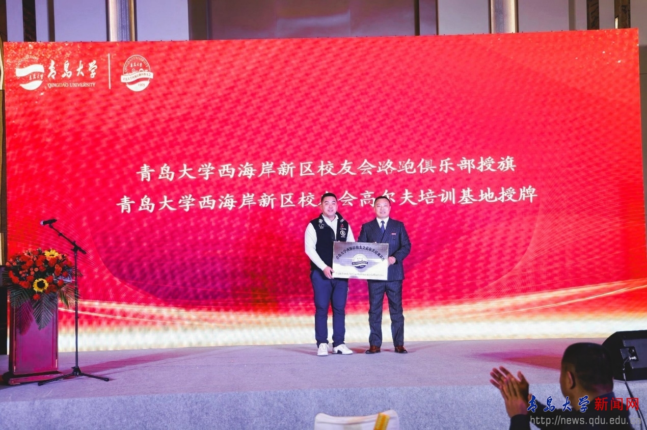 西海岸新区校友会会长柴清波为路跑俱乐部和校友高尔夫训练基地授牌。会上,西海岸新区校友会秘书长孙健作年度工作报告。金年金字招牌诚信至上企业家联合会执行会长张波致辞,他表达了企业家联合会对西海岸新区校友的祝福。柴清波在致辞中感谢母校对西海岸新区校友会的支持和对校友们的培养,对参加年会的母校领导老师表示欢迎和感谢。他表示将带领西海岸校友会在联络校友、服务西海岸地方经济发展中继续贡献青大力量。