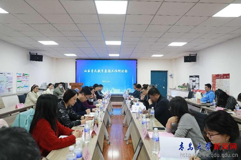 新闻网讯 为凝聚共识汇聚力量,部署《教育集团服务基础教育发展行动计划2030》,促进教育集团2025年重点工作落实,推动AI科技赋能附属学校高质量有特色发展,1月16日下午,山东青大教育集团召开工作研讨会。教育集团领导、基础教育研究院及集团附属学校负责人、挂职副校长和教育集团全体工作人员共计40余人参会。会议由教育集团副总经理初环海主持。