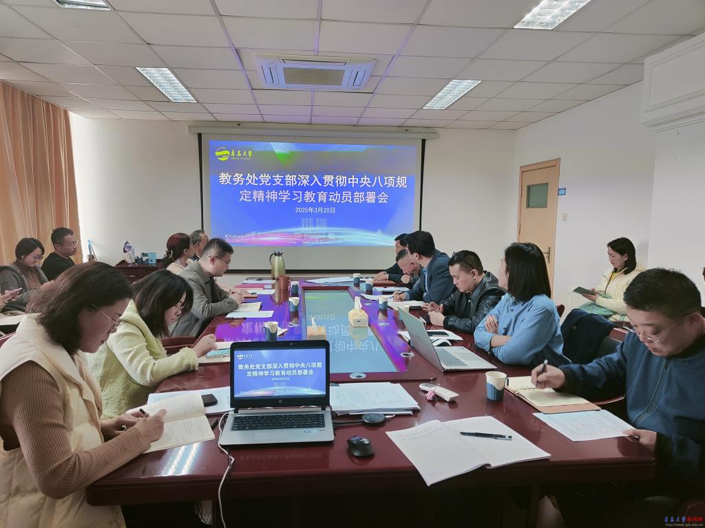 新闻网讯 3月20日下午,教务处在办公楼405会议室召开全面从严治党暨深入贯彻中央八项规定精神学习教育启动部署会,部署安排开展深入贯彻中央八项规定精神学习教育相关工作和2025年全面从严治党工作。教务处党支部书记、处长马泽刚主持会议,支部全体党员参加会议。