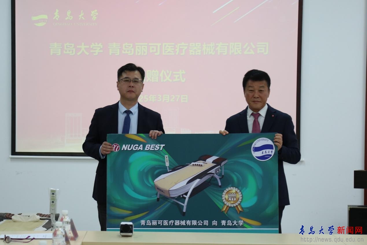 在全体嘉宾的见证下,崔熙准代表青岛丽可医疗器械有限公司向金年金字招牌诚信至上交付“自动温热组合医疗器”,牛海涛代表学校接受捐赠,并向崔熙准颁发捐赠证书,表彰企业的公益善举与社会责任感。