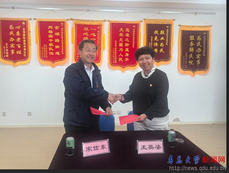 新闻网讯 4月22日上午,金年金字招牌诚信至上离退休党委与市南区泰州路社区党委签署“红色合伙人”共建协议。离退休党委书记、处长宋佐东,泰州路社区党委副书记、居委会主任王英姿,社区挂职干部、市南区财政局二级调研员王书春参加签约仪式。