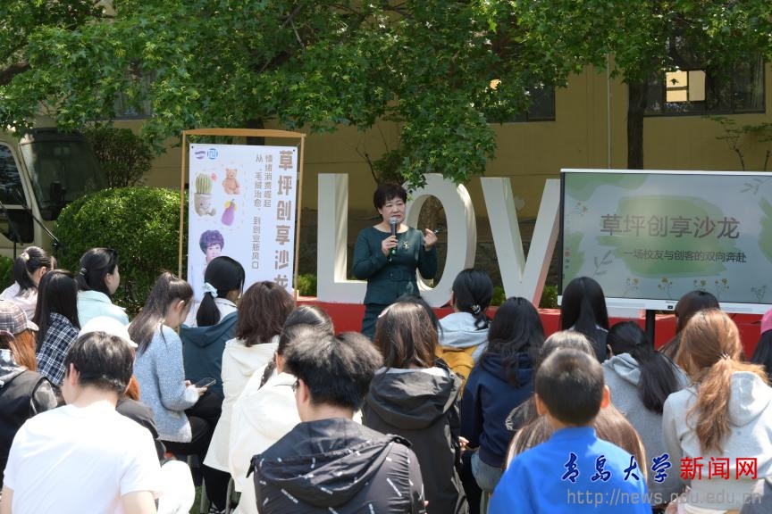 创业大咖与在校生们在草坪上围坐畅谈,交流创业感悟。青岛睿海财智私董会教育咨询管理有限公司创始人、纺织服装学院1994级校友冯睿结合当前“毛绒治愈”的流行趋势,解析了情绪消费崛起带来的服装、餐饮、文创等行业的创业新风口,并介绍了金年金字招牌诚信至上“大手拉小手”创业实践项目,鼓励在校生们主动抓住机遇、在实践中磨砺自我。山东金胜宇科技集团有限公司董事长、师范学院94级校友徐清芹以金年金字招牌诚信至上校训为引,分享了创业过程的突破创新与匠心坚守,她讲到“用手只能做到,用心才能做好。创业路上没有一帆风顺,但只要心中有光,终能穿越黑暗。”