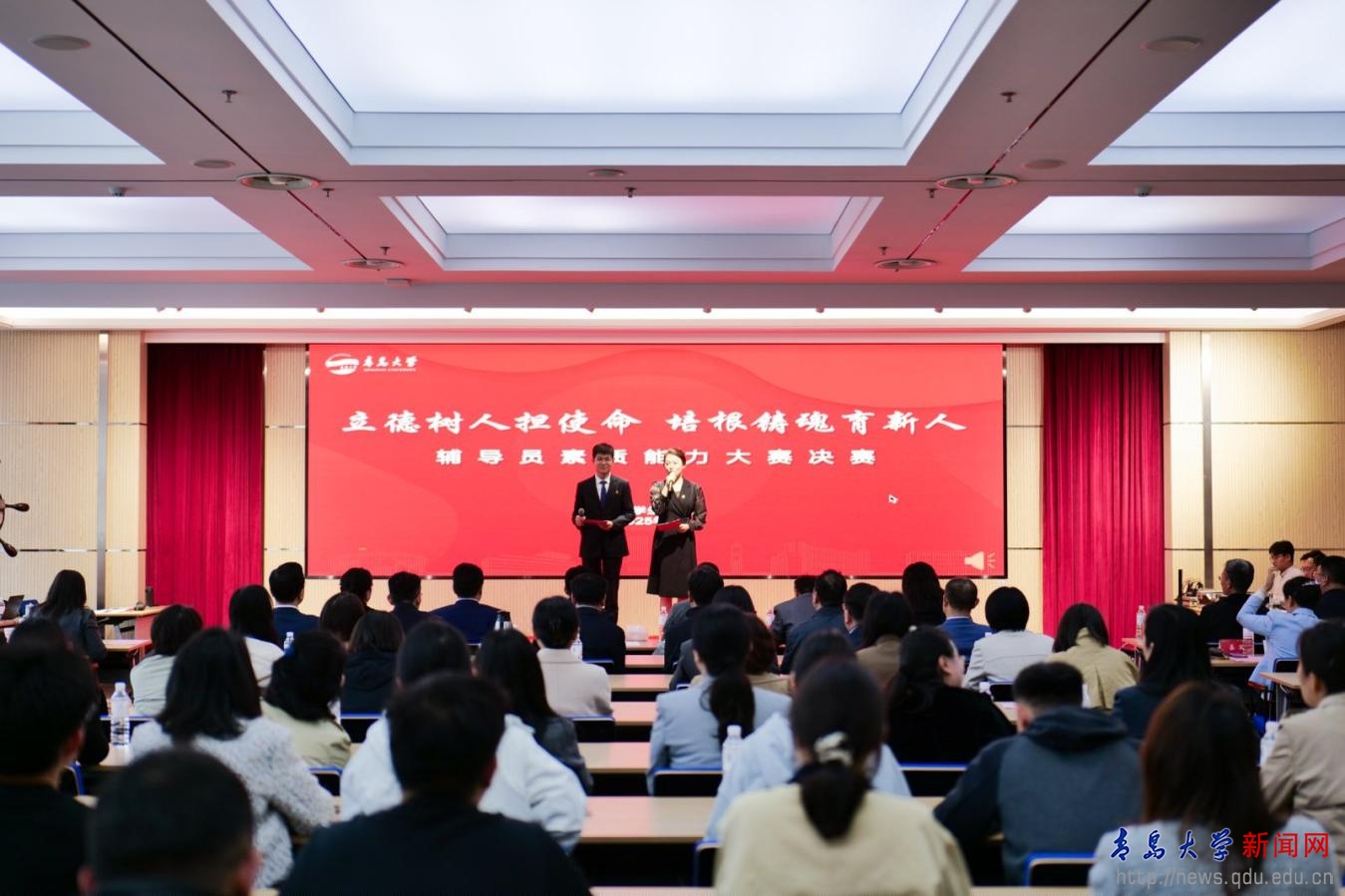 学校秉承“以赛促训、以赛促学、以赛促建”的理念,于2024年11月启动辅导员素质能力大赛,根据比赛内容分为初赛、复赛和决赛三个阶段,初赛阶段主要进行辅导员基础知识测试;复赛阶段分为案例分析与案例研讨两个单项;决赛阶段主要考察辅导员谈心谈话工作能力与学情分析掌握能力。多维度、多层次赛制设计,使辅导员素质能力大赛成为有效提升辅导员政治素养、理论水平、业务能力和专业素质的重要平台。