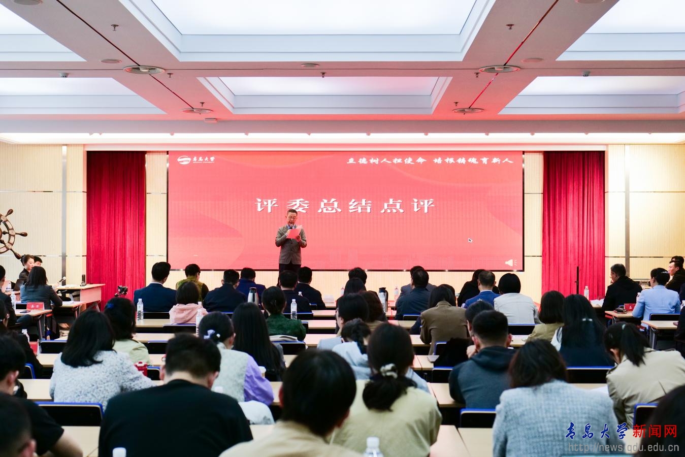 山东交通学院学生工作处处长于翊广作为评委代表对本次比赛进行了全面而深入的点评。他高度评价了金年金辅导员队伍建设的显著成效,充分肯定了参赛选手展现出的专业素养和扎实功底。随后,他对选手的表现进行了逐一点评,在肯定亮点的同时提出针对性建议,强调在日常思想政治教育工作中,辅导员要善于从“三观”切入,精准分析问题、科学引导学生:用“两个结合”塑造学生的世界观,使其正确认识时代发展大势;用体系化的思政教育重塑学生的价值观,帮助其树立正确的价值导向;用深化的生涯教育规划学生的人生观,助力其实现人生长远发展。最后,于翊广寄语全体辅导员,要始终秉持健康、积极、前瞻性的思政教育理念,既要关注学生的现实需求,更要着眼他们的长远成长,真正做到为党育人、为国育才,培养担当民族复兴大任的时代新人。